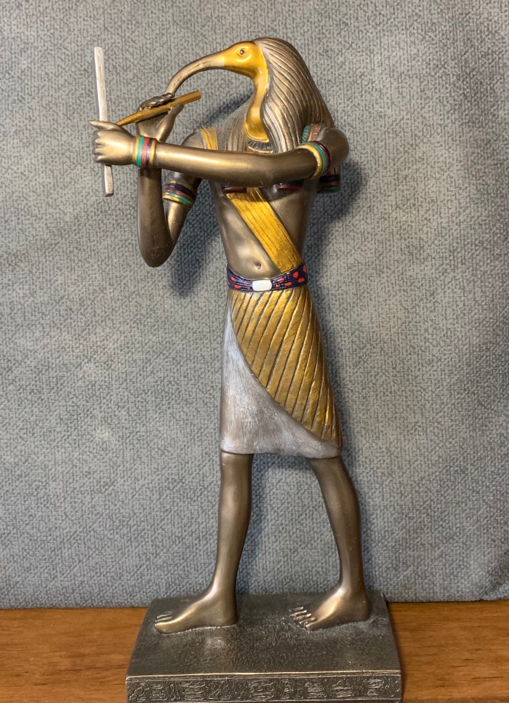 Thoth told me not to be afraid, and introduced himself as Thoth, Ancient Egyptian God of Writing, Wisdom, and Magic, the Overseer and Commander of All Scribes.